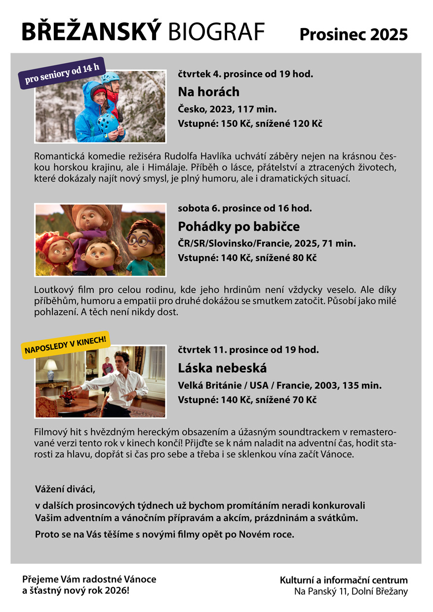 Dlouhé zimní večery jsou jako stvořené pro film! Přijďte si odpočinout, pobavit se a naladit se na adventní čas.